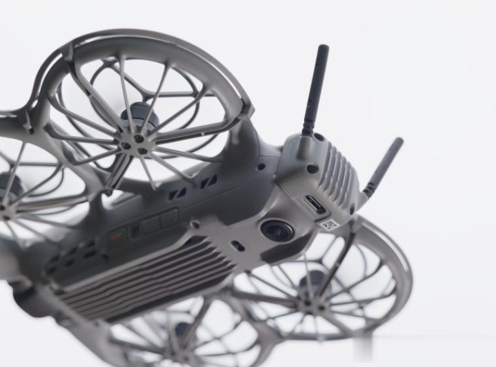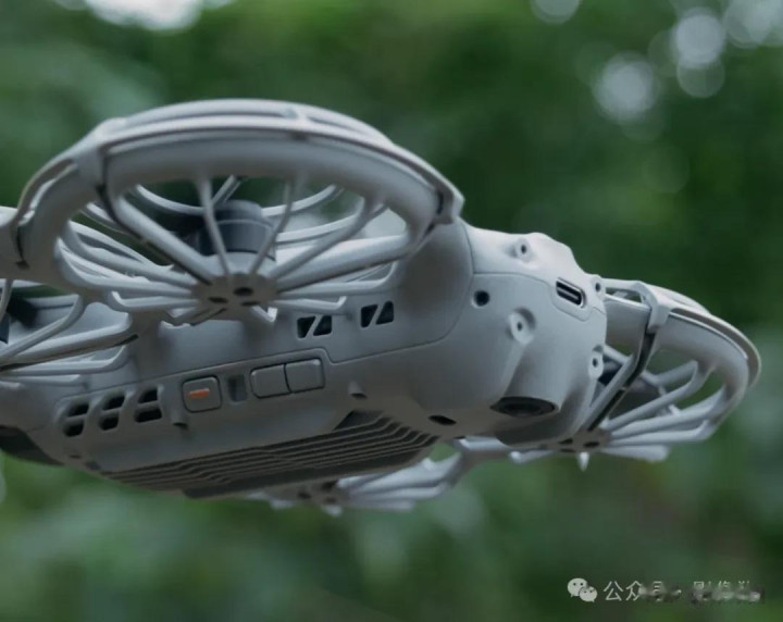 机身尾部有上下两颗摄像头负责视觉避障,看这个造型应该是近全景视角的,再大一点是不是就直接能当全景无人机用了呢?狗崽很期待啊~