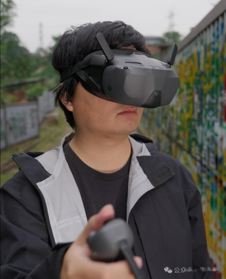 更进一步的话就可以上头显 + 鸡腿(沉浸式操作):戴上头显就像把自己“扔进”飞机机舱,视角和反应更直接,更适合想拍 FPV 风格动作镜头的人。头显下飞行依然享有避障保护,但要注意调整好姿态,别因为沉浸忘了周围环境。现在速度比上代大幅提升以后,用头显拍摄也会更加有意思。