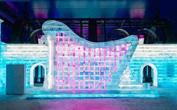 除了“冰酒吧”里的冰雕乐器,梦幻冰雪馆里还有长度不一、坡度各异的冰滑梯,幸运萌狍、同心锁、“天使之音”冰竖琴、冰火车、呼吸开合砗磲、海洋精灵、人在冰图、冰雪音乐厅等冰雪互动体验项目,让游客朋友可以沉浸式与冰雪互动,体验不一样的欢乐。