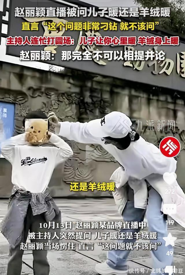 主持人好像意识到自己提出的问题不恰当,便想着拼命找补。 又蹦出了一句,自以为是的金句。 “儿子给你心里的暖,羊绒给你身上的暖。”